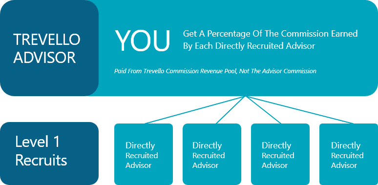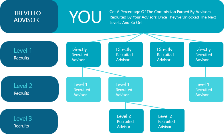 When you recruit new advisors and teams to join Trevello, you are rewarded with a share of the revenue they generate in sales. It’s important to note, the share paid to you comes from Trevello’s commission split—not the recruited advisor’s commission. And there is no limit to how many advisors you can recruit directly… meaning almost unlimited earning potential.